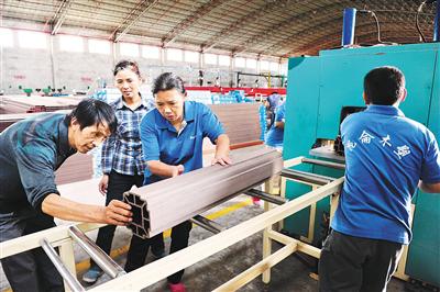 近日,海口桂林洋經(jīng)濟(jì)開發(fā)區(qū)駐區(qū)企業(yè)工人在生產(chǎn)新型環(huán)保建筑材料,準(zhǔn)備運(yùn)往大洋彼岸的巴布亞新幾內(nèi)亞,將為這個(gè)國家建造500套木塑公寓別墅。