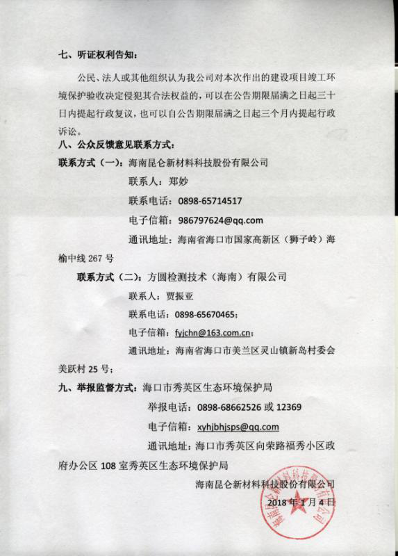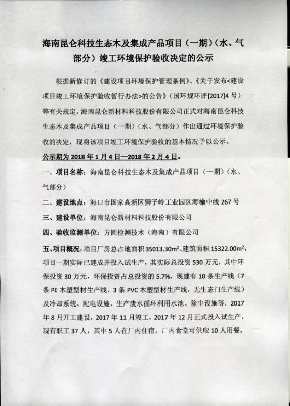 作出昆侖木塑項目(一期)(水、氣審定稿)驗收決定的公示